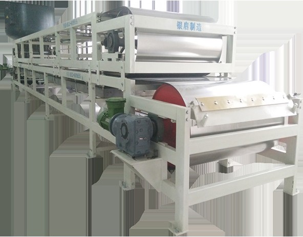 液態的物料流經拌熱管道進入設備前端的布料裝置(溢流槽),并不斷的從溢流槽中溢出,不間斷的均勻分布在運動的兩層鋼帶之間。物料在上下兩層鋼帶間受到冷卻水的均勻冷卻,用鋼帶自身優良的熱傳遞特性,使液態物料在移動過程中固化成固體物料片。